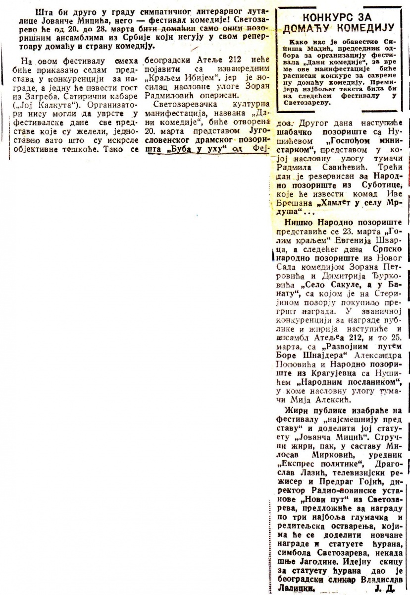 POLITIKA-EKSPRES-11061971-KRITIKA-BUBA_U_UHU_LJUBISA_RISTIC_ZORZ_FEJDO_NIKOLA_SIMIC_MILAN_GUTOVIC_BOJAN_STUPICA_JUGOSLOVENSKO_DRAMSKO_POZORISTE
